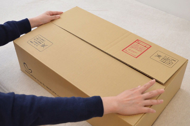 箱を開けたときに一番最初にメッセージが見えるよう、ラッピングした枕の上に添えてお届けします。